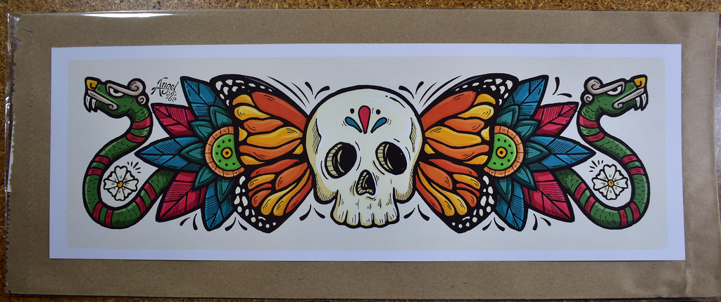 Ilustración mexicana inspirada en la mariposa monarca y las artesanías tradicionales de nuestra cultura.