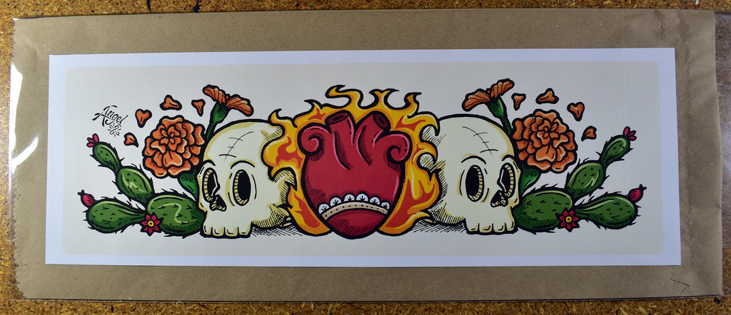 Print inspirado en la representación azteca del corazón con elementos mexicanos tradicionales.