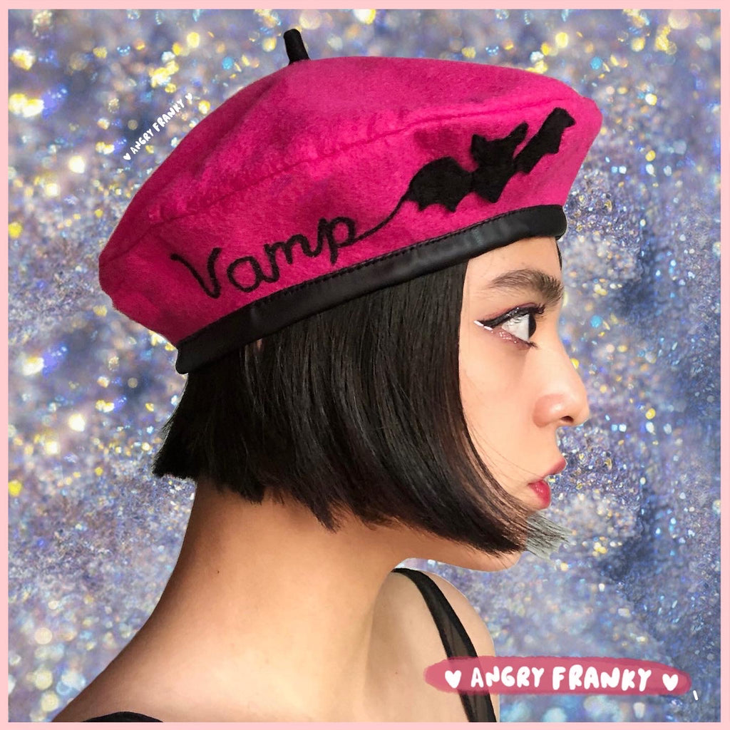 ** Boina Angry Franky en lana, con forro, contorno de vinipiel y detalles aplicados con técnicas diversas.