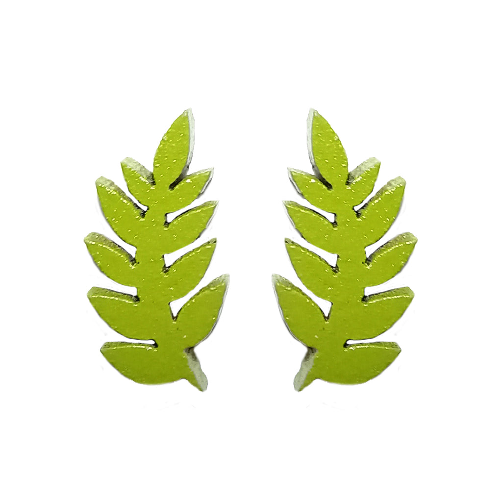 Aretes de MDF de 3mm de grosor, pintado a mano con pintura acrílica y recubierto con barniz. Al ser un comprimido de madera son muy ligeros. Poste de acero inoxidable (hipoalergénico).