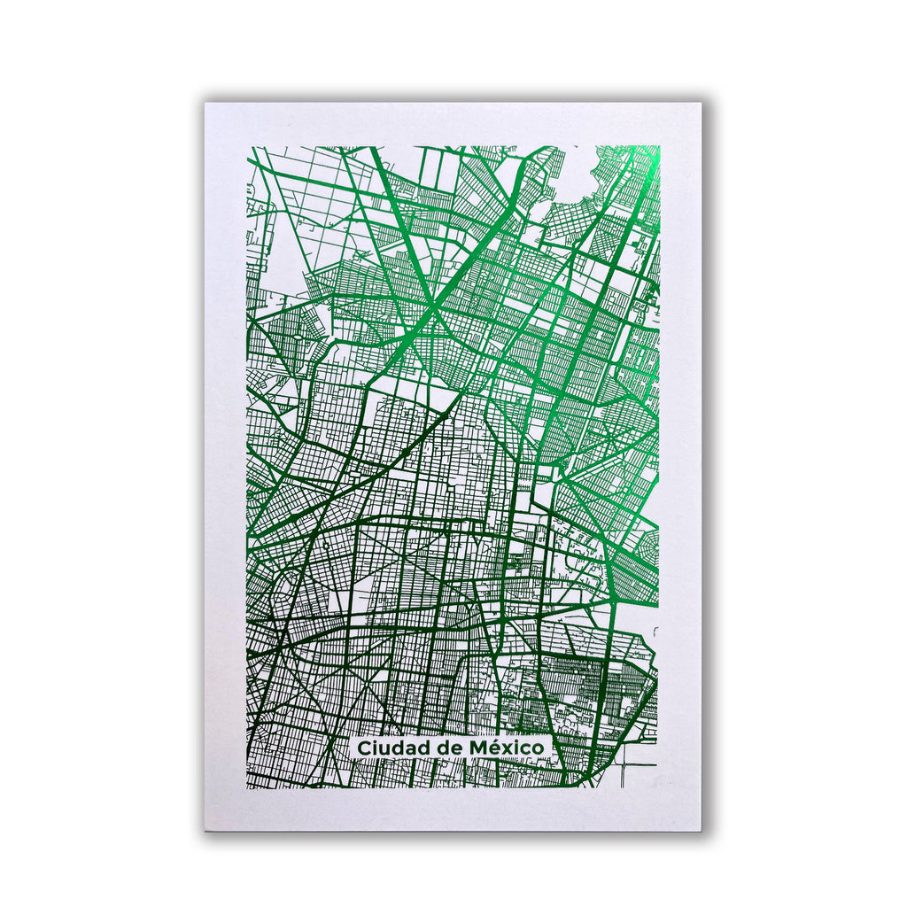 Print con traza de mapa de Ciudad de México en metalizado color Verde.