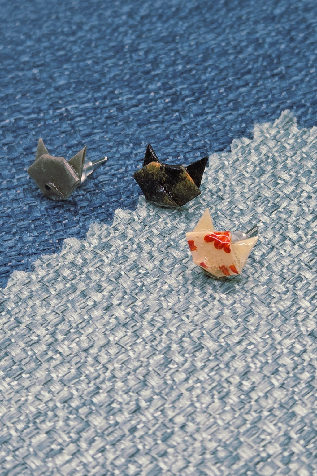 Aretes de gatitos, tres gatitos de diferentes colores estilo origami