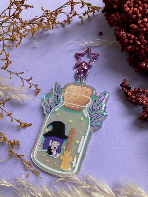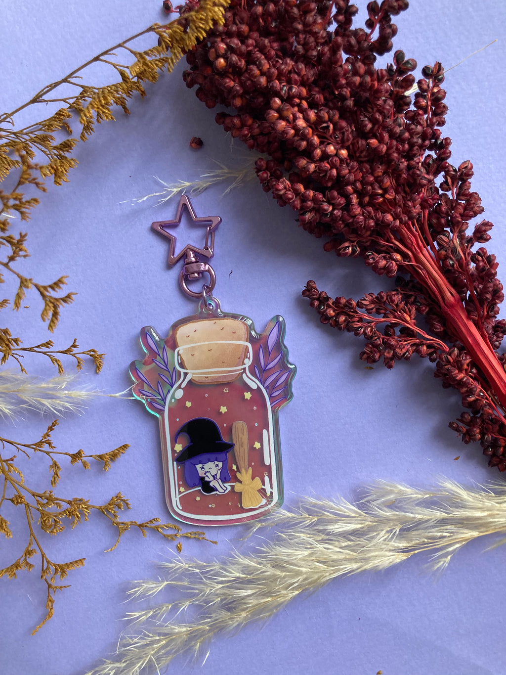 Esta linda brujita es muy traviesa y fue embotellada junto a su fiel escoba.