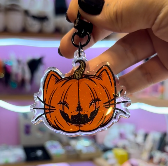 Llaveros de acrílico encapsulados con baño de resina y glitter.