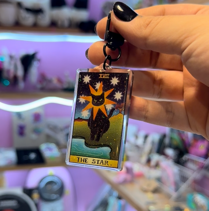 Llaveros de acrílico encapsulados con baño de resina y glitter.