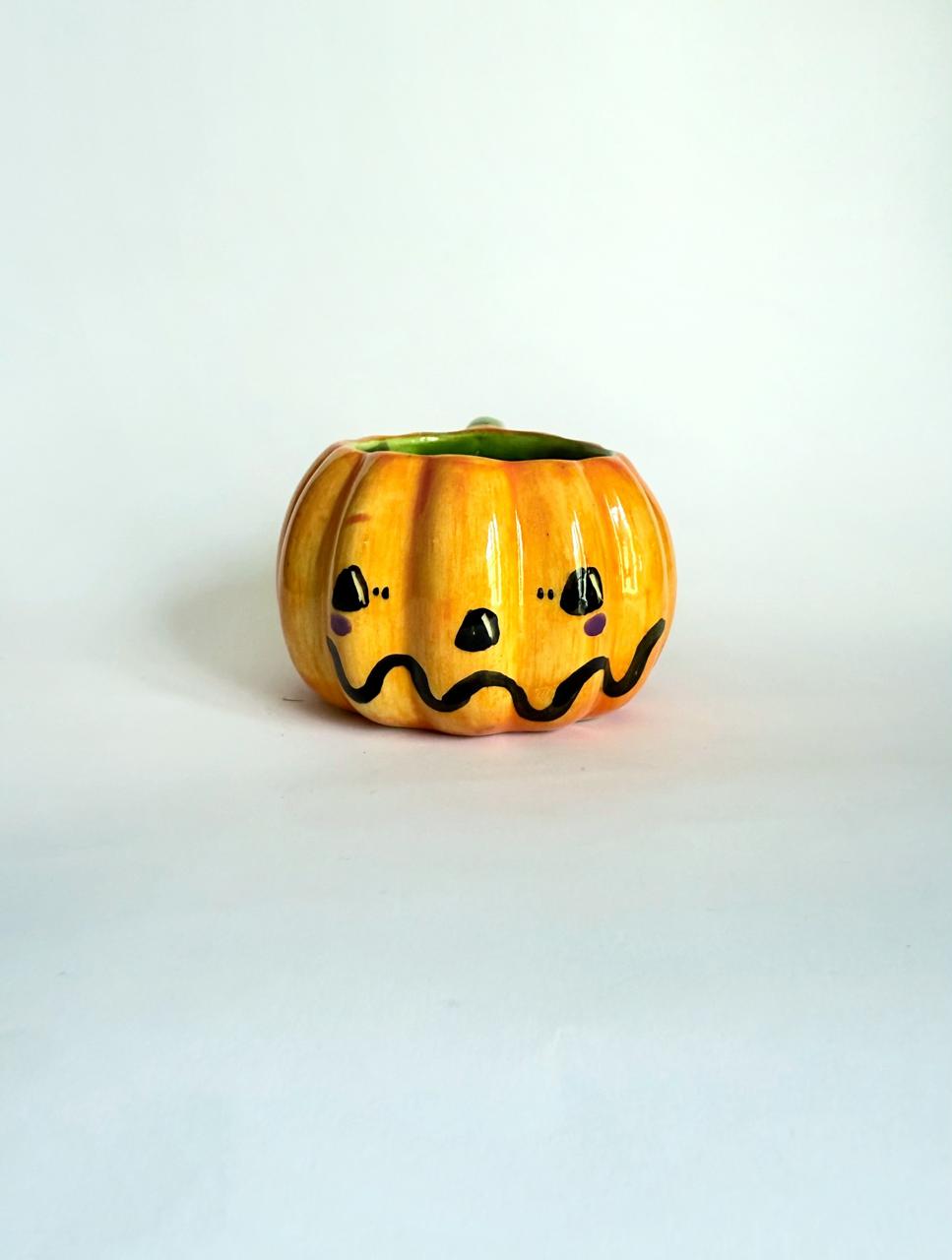 Tazas de cerámica con cara de Calabacita, ideal para por las mañanas espantar el sueño elaborada y pintada a mano. Esmaltada, se puede utilizar en microondas y bebidas calientes.
